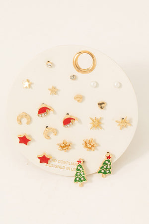Jingle all the way to festive flair with this charming mixed stud earring set. Perfect for the holiday season, this collection features an assortment of Christmas-themed designs that let you switch up your look daily. From classic motifs to playful accents, each pair brings sparkle and cheer to your everyday style. Mix, match, and celebrate the season with versatile studs that work for holiday parties, casual outings, or just spreading seasonal joy. A delightful gift for yourself or the earring lover on your list.