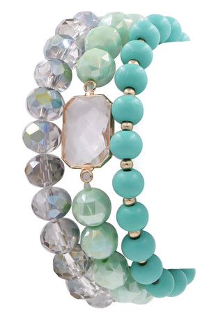 These faceted beads will add color and fun to any look. The charms and chunky beads make this bracelet set a perfect accessory for any occasion. With endless combinations, you can find one that fits your style.