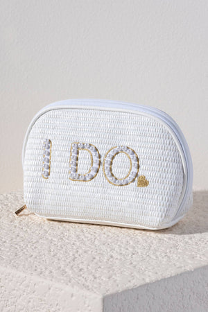 Carry all your cosmetic essentials for your big day in this "I Do" Zip Pouch. This chic top-zip pouch is embroidered with faux pearls and gold stitching and makes for the perfect cosmetic pouch for your honeymoon.  *Polypropylene and faux pearls, top zip closure*