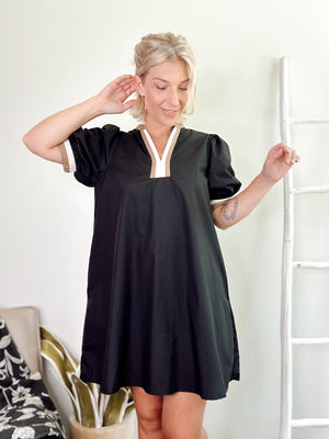 The Addie Mini Dress is your new go-to for effortless style and comfort. This playful pullover features a vibrant multicolor band accent that adds a fun pop to your look. Lightweight and lined for ease, it’s crafted from a soft woven blend of polyester and cotton. With handy side pockets and a flattering short sleeve cut, this non-sheer dress keeps you cool and chic all day long.