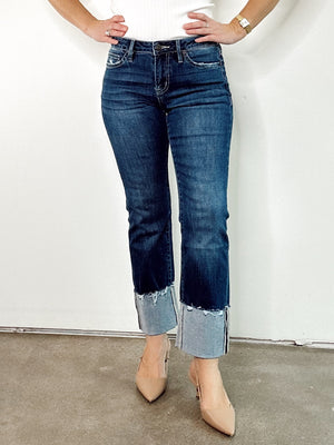 Meet Allie—the jean that knows how to make an entrance. With a mid-rise cut and slim-straight silhouette, she's got that effortless cool factor down pat. The cuffed hem adds a touch of intentional style, perfect for showing off your favorite sneakers or boots. Crafted from a premium cotton blend with just enough stretch to keep you comfortable all day, Allie is your new go-to for casual Fridays, weekend hangs, and everything in between.