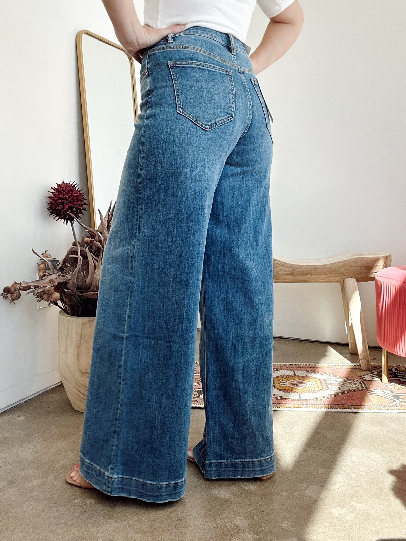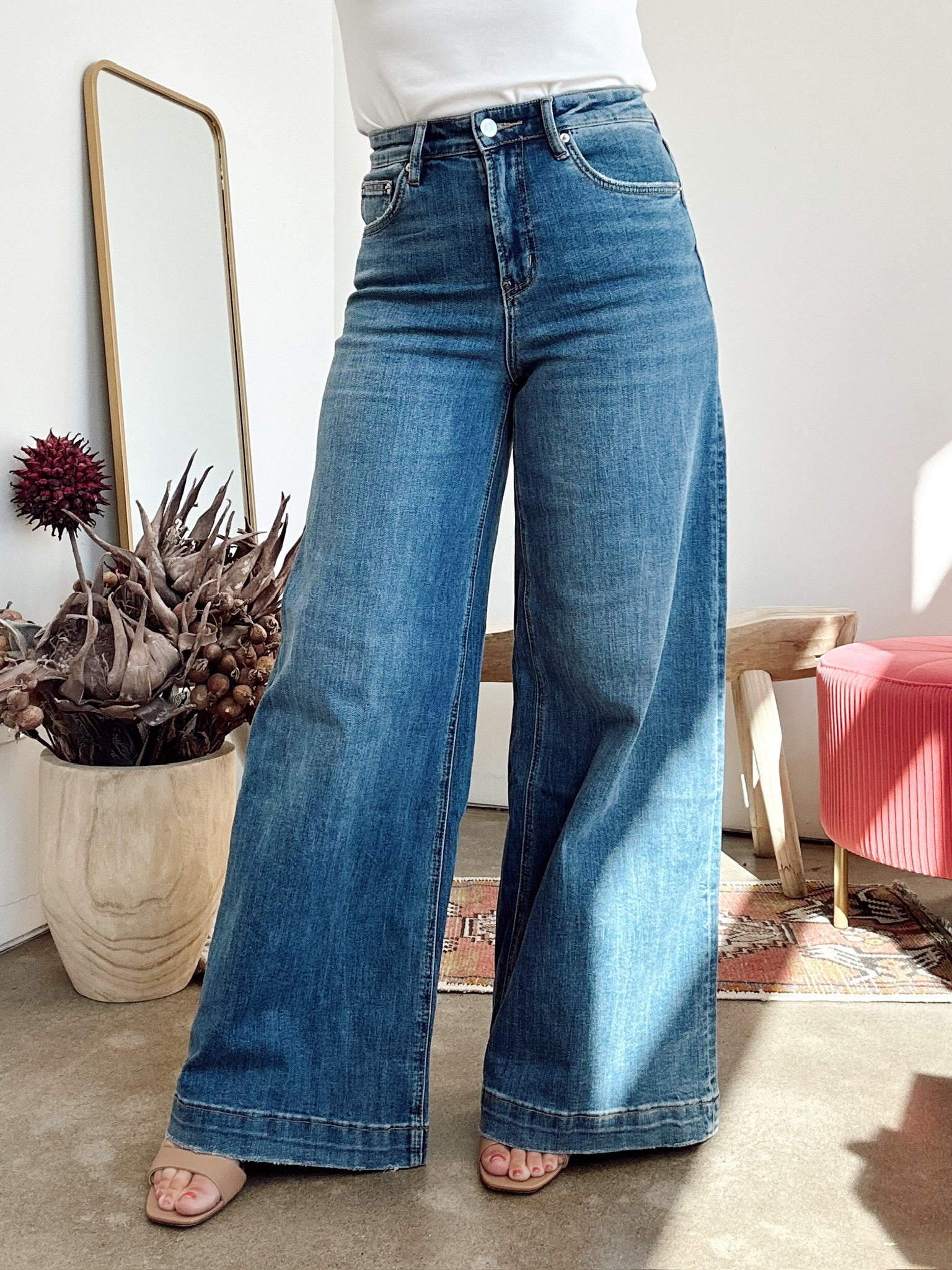 Get ready to turn heads with the Maela High Wide Leg Slouchy Jeans! Crafted from a comfy blend of 93% cotton, 5.7% polyester, and 1.3% spandex, these jeans offer a soft, stretchy fit that moves with you. The super high waist and wide leg design create a flattering silhouette, while the slouchy wash adds effortless, lived-in cool. With an 11 1/2" front rise, 31 1/2" inseam, and a roomy 28" leg opening, these jeans promise comfort and style from day to night. Perfect for anyone who loves a relaxed yet fashion-forward look!