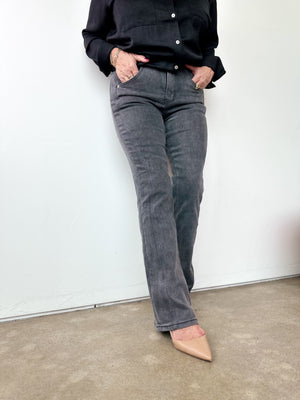 Introducing the Ada High Rise Bootcut—your new denim obsession. With a flattering 11" front rise and a gentle side panel tummy tuck, these jeans hug you in all the right ways. The 32" inseam and 18" leg opening create that perfect bootcut silhouette that works with everything in your closet. Crafted from a breathable cotton-blend (90% cotton, 8% poly, 2% spandex), they're comfortable enough for all-day wear and durable enough to become your go-to pair.