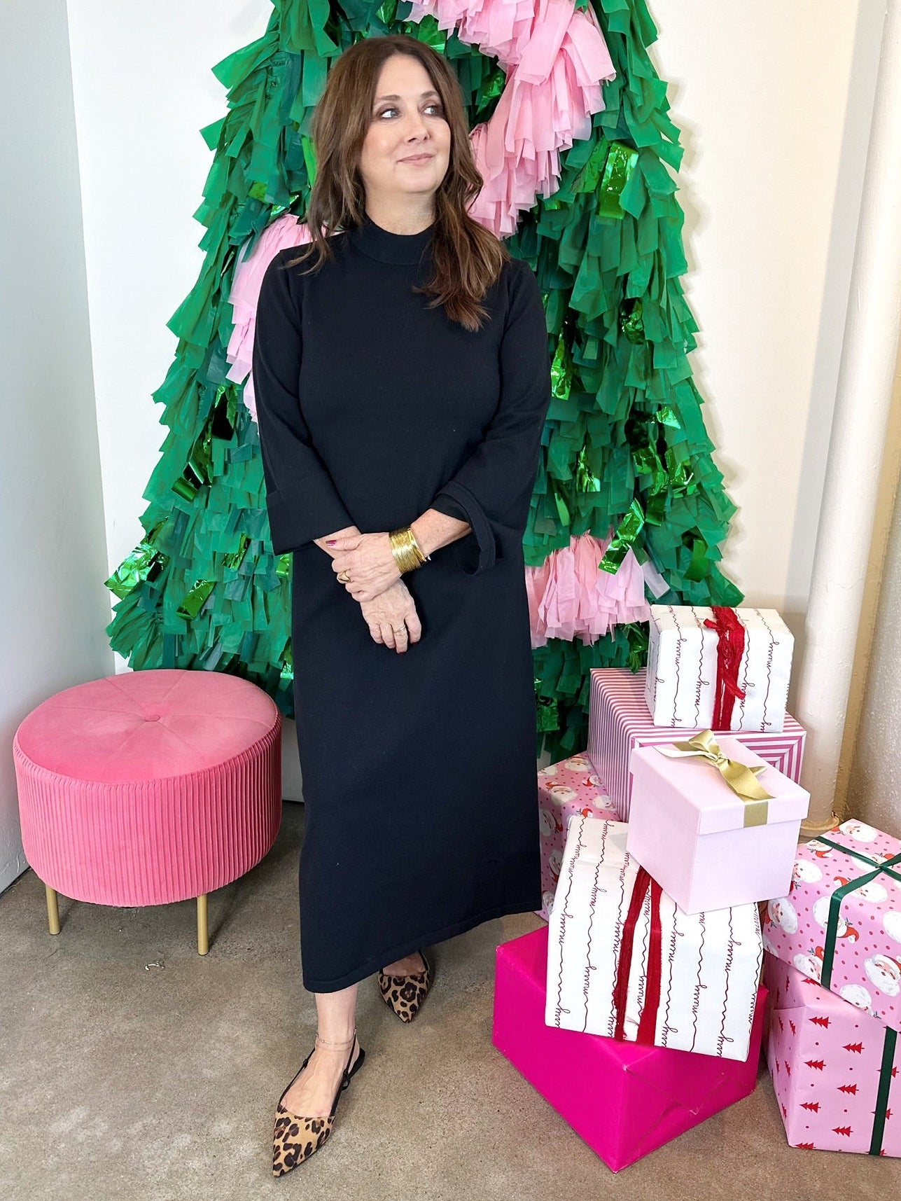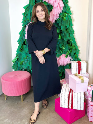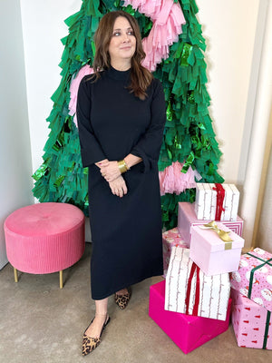 Get ready to turn heads in the Daniela Mock Neck Midi Dress in Black. Made from a medium-weight knit blend, this unlined dress combines a fun mock neck with long sleeves that keep you cozy without feeling too warm. The non-sheer fabric gives you confidence, while the flattering midi length adds just the right amount of sophistication. Perfect for any event where you want to shine with easygoing style.