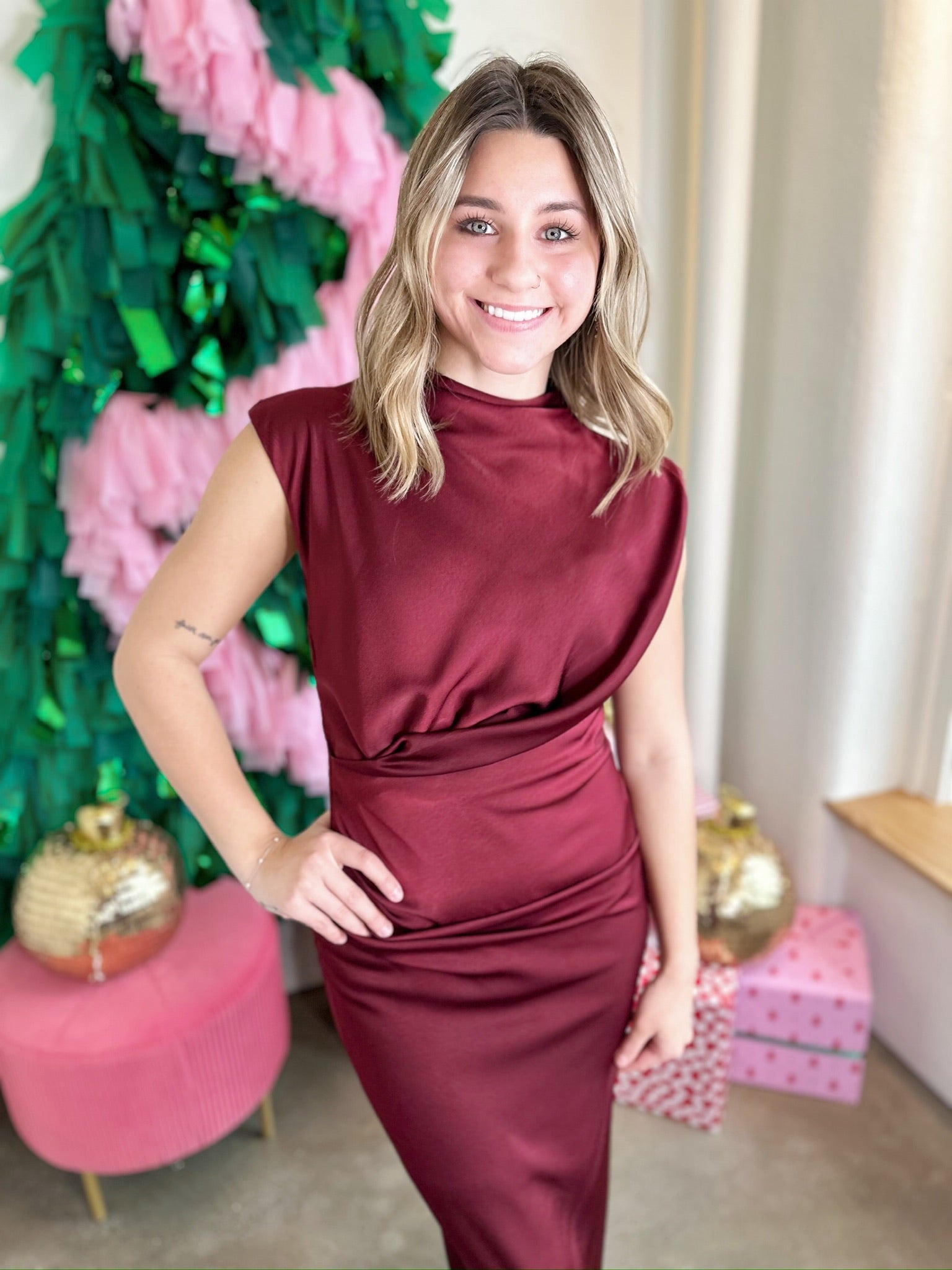 Playful Mock Neck Dress with Cap Sleeves Slip into effortless style with this charming mock neck dress. The structured neckline keeps things polished while cap sleeves add a touch of vintage-inspired flair. Perfect for layering or wearing solo, this piece transitions seamlessly from casual outings to weekend adventures. A wardrobe essential that feels anything but basic.