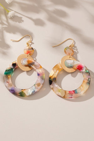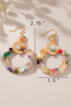 Add a splash of color and fun to your look with these Acetate Hoops Drop Earrings. Featuring vibrant marbled acetate hoops paired with a sleek matte gold-tone ring, they bring a playful yet modern vibe. The round acetate bead studs tie the design together while keeping them lightweight and comfy for all-day wear. Perfect for brightening casual outfits or adding a bold touch to semi-formal styles, these earrings effortlessly blend charm and chic.