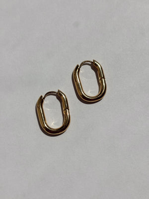 Metallic Oval Hoop Earrings. A new addition to our collection, these hoops exude timeless sophistication. While these earrings follow the traditional hoop style, their unique metallic oval design sets them apart.
