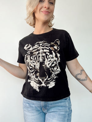 Golden Foiled Tiger Face Graphic Tee
