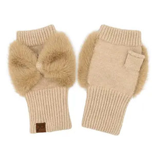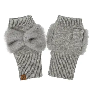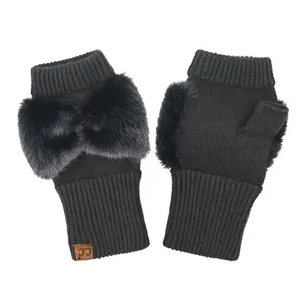 The perfect combo of functional and cute! These knitted fingerless gloves are featuring the perfect faux fur bow tie on top! Cozy and comfortable. Comes in one size and multiple colors.