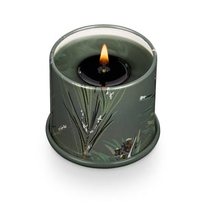 This 3 oz. tin is swathed in wintry imagery, transforming your home into a festive, snug haven. Our signature holiday scent is a symphony of balsam, oak moss, cedar, cinnamon, and eucalyptus. Burn time: 20 hrs! Soy candle.