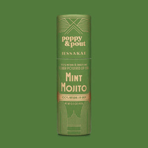 Dare to refresh with this playful mint lip balm that's anything but ordinary. Infused with cool peppermint oil and natural botanicals, Mint Mojito delivers a silky, nourished feel that's as bold as your personality. This limited edition collaboration celebrates confidence and charm in every swipe. Crafted by Poppy & Pout using 100% natural ingredients—coconut oil, beeswax, sunflower oil, and pure mint—it's handmade in Idaho with care. The eco-friendly cardboard tube is packed with hydrating goodness from top to bottom, and when you're finished, simply recycle it. Perfect for those who love to make a statement.