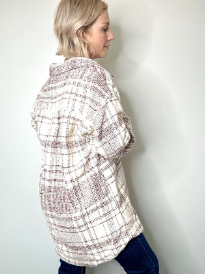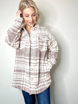 Maya Plaid Shirt Jacket Burgundy/Cream