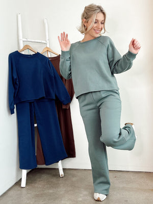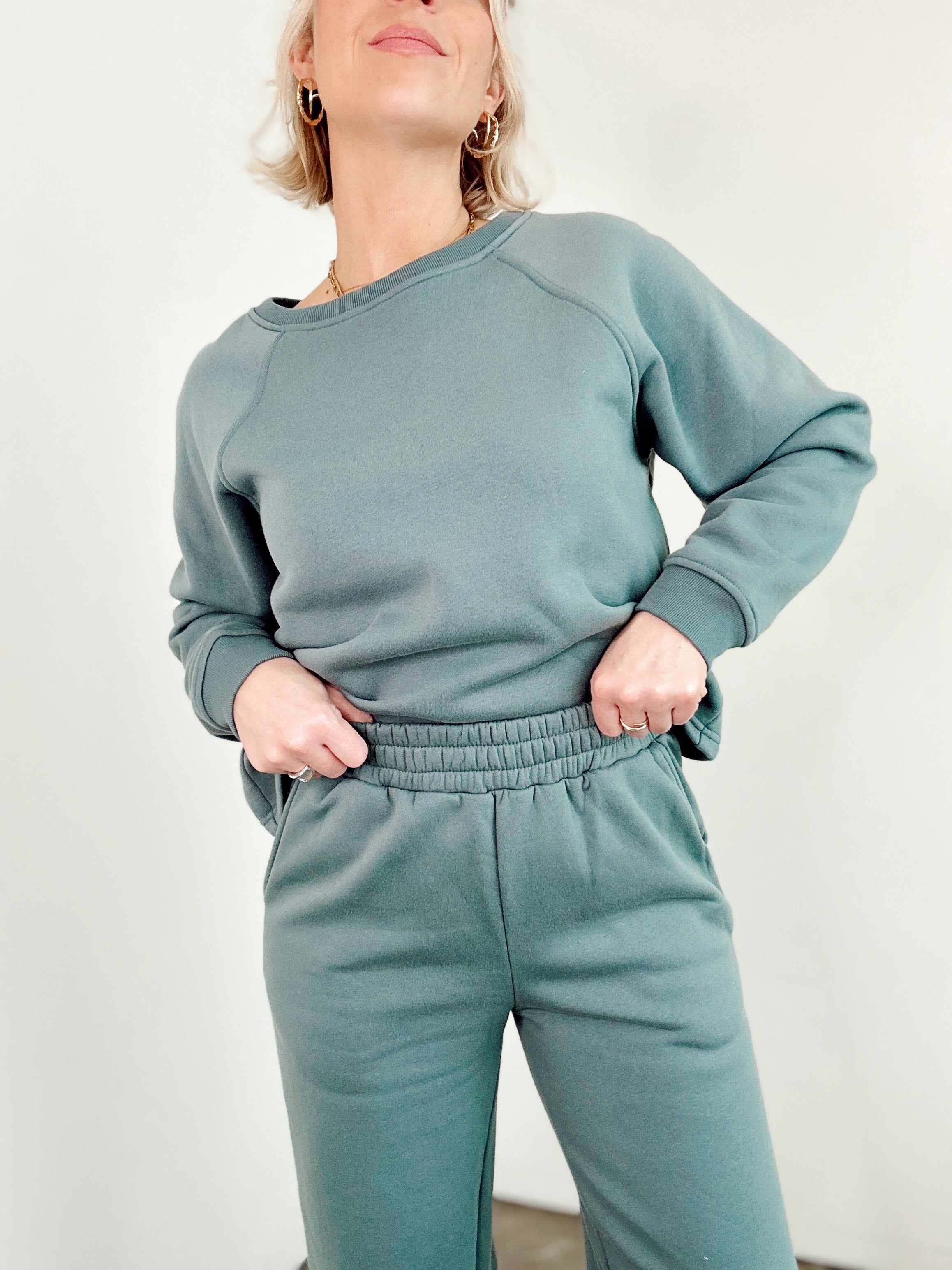 Cozy up in our Kara set—a fleece raglan pullover paired with matching sweatpants that feel like a warm hug. The pullover hits at 22" in length with a relaxed 45" bust, while the sweatpants feature a 27" waist and 29.5" inseam (measurements from size small). Perfect for lounging, running errands, or pretending you have your life together. Note: colors may appear slightly different depending on your screen.