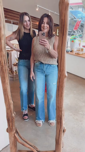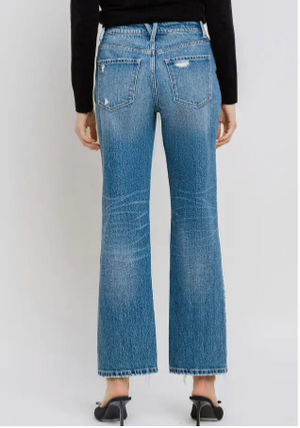 Here's another twist on the dad jeans... this high rise pair features some distressed detail with an ankle length cut and raw hem. Made from the comfort stretch denim for a nice and comfy fit that we know you will love!