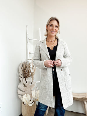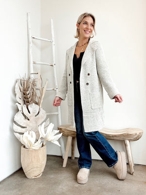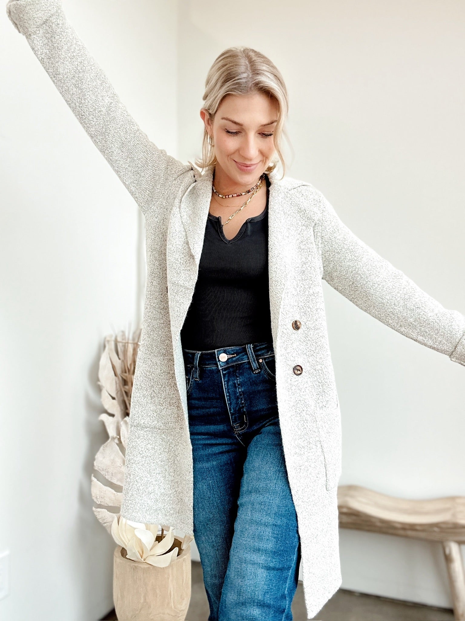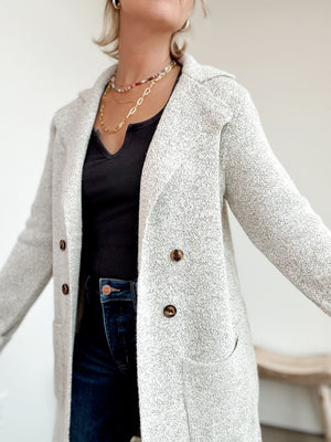 Cozy up with the Brielle Open Sweater Coat. This playful coatigan boasts double-breasted buttons and a stylish notched collar, hitting right at the knees for a flattering fall and winter look. With long sleeves for warmth and handy front patch pockets, it’s as functional as it is fun. A back slit keeps you comfortable on the move, perfect for holiday fun or daily wear. A perfect layer to brighten up your chilly season wardrobe! Made from 72% acrylic, 20% nylon, and 8% polyester.