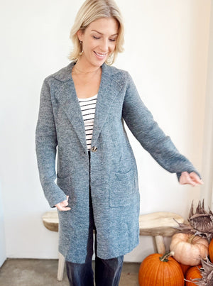 Cozy up with the Brielle Open Sweater Coat. This playful coatigan boasts double-breasted buttons and a stylish notched collar, hitting right at the knees for a flattering fall and winter look. With long sleeves for warmth and handy front patch pockets, it’s as functional as it is fun. A back slit keeps you comfortable on the move, perfect for holiday fun or daily wear. A perfect layer to brighten up your chilly season wardrobe! Made from 72% acrylic, 20% nylon, and 8% polyester.