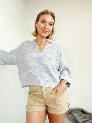 Clara Cropped Sweater Dusty Blue