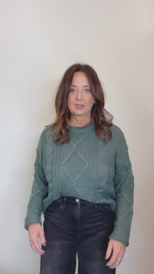 Introducing the Ember Cable Knit Sweater... the perfect combination of style and comfort. With a slight crop and detailed cable knit design, this sweater is perfect for the upcoming season! Elevate any outfit with its unique sleeve detailing. A must-have for any fashion enthusiast! Available in multiple colors!