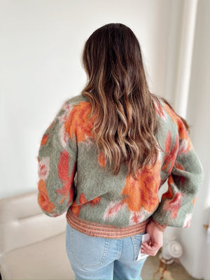 The Olivia Floral Cardigan brings a delightful vintage vibe with its charming floral pattern and classic button-down style. Crafted from a cozy blend of 38% acrylic, 18% wool, and 32% polyamide, it offers warmth and softness perfect for layering on cooler days. This sweater cardigan adds a touch of playful elegance to any outfit, making it a go-to piece for those who love comfort with a nostalgic twist.