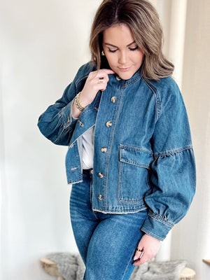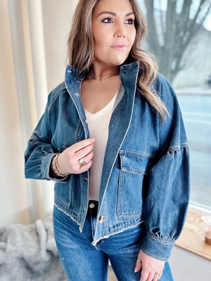 Throw on the Lindsey and instantly elevate your casual game. This twill jacket strikes the perfect balance between no-nonsense utility and undeniable style, thanks to its statement balloon sleeves that add just the right amount of drama. Cinch the drawstring waist to dial in your silhouette, stash your essentials in the front flap pockets, and button up for effortless polish. Built to last and designed to turn heads.