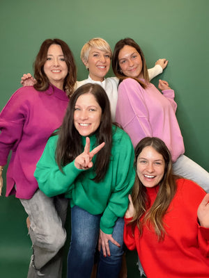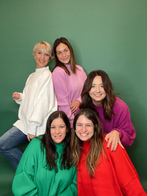 We are LOVING this oversized sweater... featuring dolman sleeves, a mock neckline, side slits and the funnest wide ribbed band details on the cuffs, hem and neckline!! This one is built for style AND comfort, and it's available in MULTIPLE colors!!
