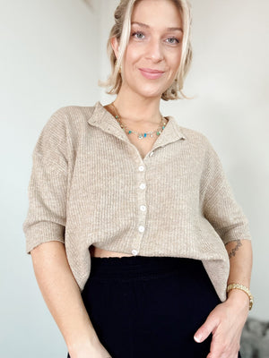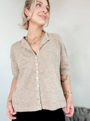 Slip into effortless style with the Cherie Cardigan in Latte. This ultra-soft, lightweight ribbed knit drapes beautifully with a relaxed fit that's perfect for layering or wearing solo. The short sleeves keep things breezy, while the buttery-soft fabric feels like a gentle hug all day long. Throw it on over your favorite tee, dress it up with a slip, or tie it at the waist for an instant vibe upgrade. Pure comfort, zero fuss.