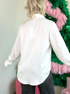 The Grace Satin Blouse is your go-to for looking put-together without breaking a sweat. The silky 100% polyester fabric feels amazing against your skin and drapes like a dream, while the classic button-down design keeps things chic and timeless. Wear it fully buttoned for a polished vibe, partially undone for effortless cool, or open as a stylish layer—the choice is yours. Perfect for holiday gatherings, date nights, or just elevating your everyday look, it pairs beautifully with everything from denim to dress pants. Throw on some statement jewelry and you're golden.
