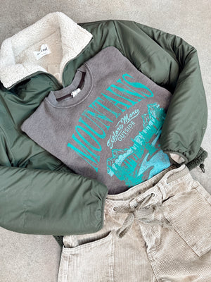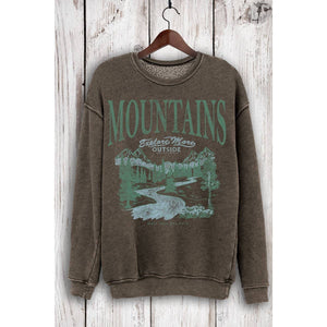 Cozy up in our Mountains Mineral Sweatshirt—a graphic tee that looks like you've owned it forever, thanks to our signature enzyme and mineral wash process. The brushed fabric feels incredibly soft against your skin, while the pre-shrunk construction means it'll fit just right, wash after wash. Rock that effortlessly vintage vibe without the vintage price tag. Toss it in cold water with like colors, skip the bleach, and tumble dry low to keep it looking fresh.