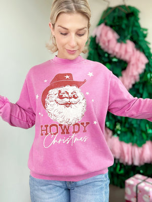 Get into the holiday spirit with this fun mineral-wash sweatshirt that combines festive Christmas vibes with a cheeky "Howdy" graphic. Whether you're trimming the tree, sipping cocoa, or just spreading joy, this cozy pullover delivers comfort and personality in equal measure. A playful way to celebrate the season with style and a smile.