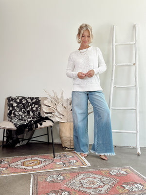Enjoy the cozy charm of this oversized sweater made from soft slub yarn, blending 60% cotton and 40% viscose. It features a round crewneck, ribbed hem with side splits, a handy chest pocket, and relaxed dropped shoulders—perfect for a casual, comfy look with a playful twist!