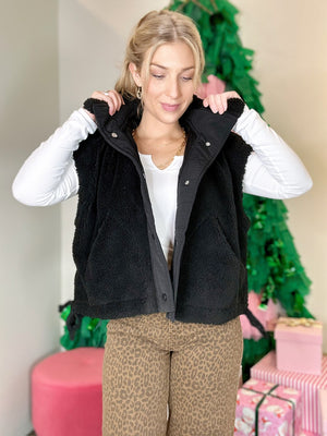 Stay cozy and chic with the Morgan Sherpa Vest, your new favorite layering companion. This playful vest features fun side tie-ups that let you customize your fit while keeping the warmth snug. With a comfy mock neck and easy button-down front, slipping it on is a breeze. Perfect for those in-between days, pair it with slim jeans or leggings for an effortlessly cute look that’s ready for anything—whether you’re out exploring or enjoying a casual city stroll. Made from 100% polyester for soft warmth and lasting comfort.
