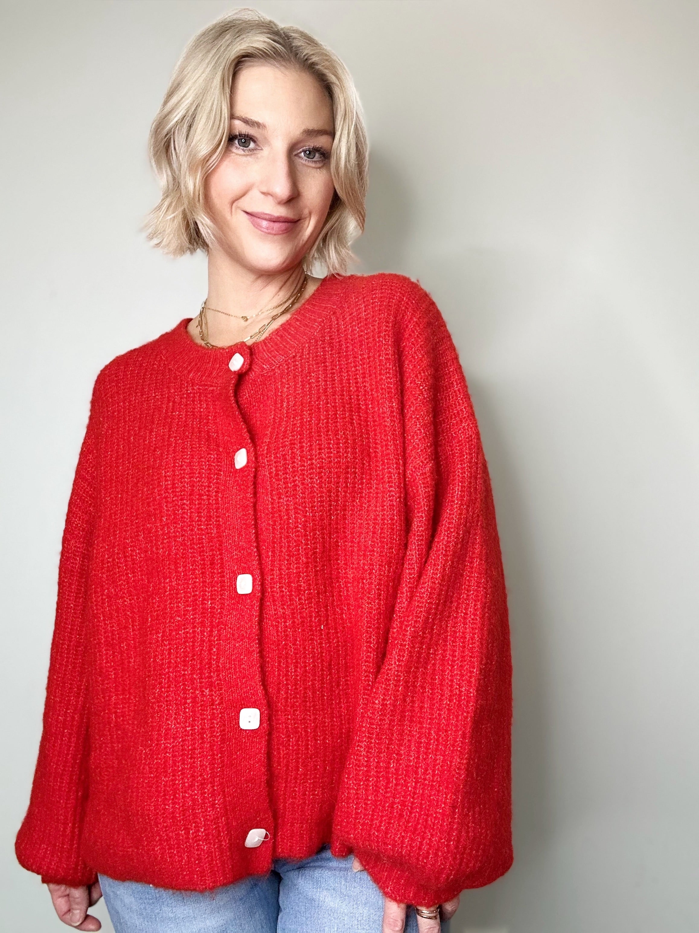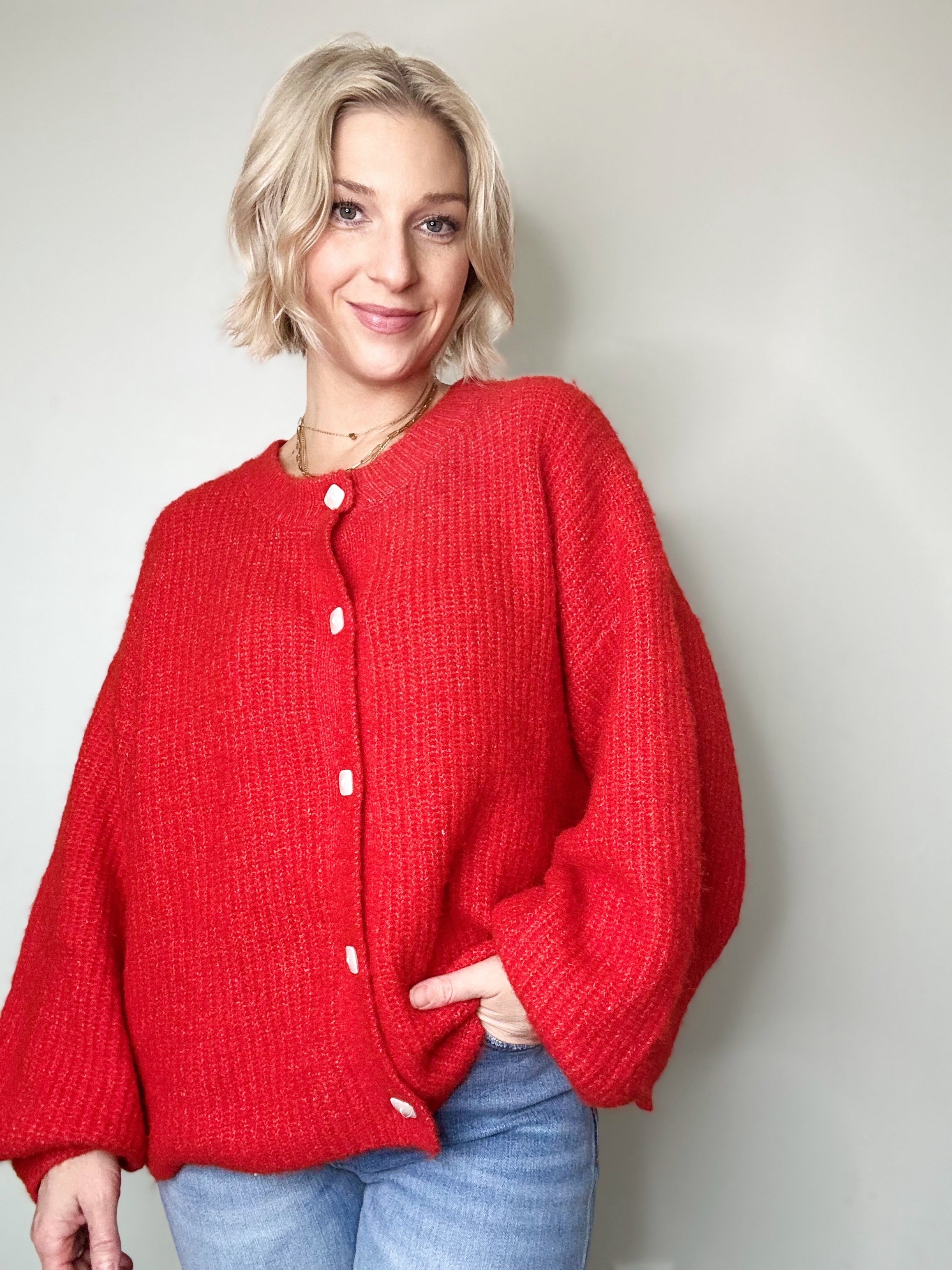 Wrap yourself in cozy vibes with this oversized cardigan that's basically a hug you can wear. The plush, textured knit feels amazing against your skin, while the exaggerated drop shoulders and balloon sleeves give you that effortlessly cool, relaxed vibe. Ribbed details at the neckline and cuffs keep everything polished, and the square button-up front makes it easy to layer or wear open. Perfect for those days when you want maximum comfort without sacrificing style. Fabric blend: 74% polyester, 15% Tencel, 7% wool, 4% spandex.