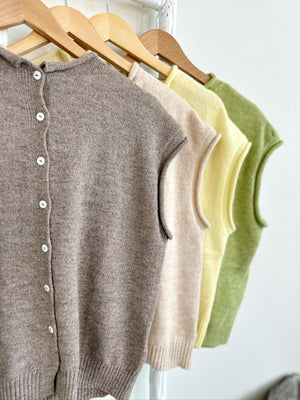 Layering just got cozy. The Piper Vest Cardigan in Butter is your new go-to for effortless style—soft knit construction pairs beautifully with rolled edge details that add subtle texture and dimension. Throw it over a tee, dress it up with a collared shirt, or wear solo for that relaxed-luxe vibe. Perfect for transitional weather and endless outfit combinations.