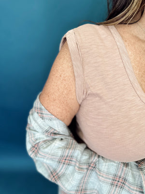 Experience effortless style with our Tillie Tee. This 100% cotton t-shirt features playful details like a raw edge back, yoke seam, and center back seam. The slightly capped short sleeves and v-neckline add a touch of fun, while the round hem falls below the hip for that perfect casual-chic vibe. Your new favorite tee just arrived!