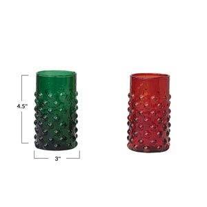 This hobnail drinking glass is the perfect way to add some festive cheer to your home and holiday table! It's 3" Round x 4-1/2"H and comes in two stunning colors - choose your favorite! It holds up to 12 oz and looks dapper as a decorations - or to add a touch of whimsy to your drinks!