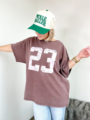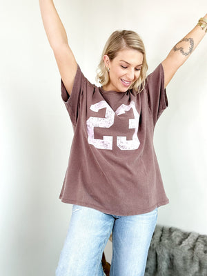 Soft, lived-in cotton meets vintage vibes in this oversized graphic tee. The mineral wash gives it that effortlessly cool aesthetic, while the distressed number graphic makes a bold statement across the chest. Ribbed crew neckline and relaxed drop shoulders keep things comfortable and casual. Layer it under your favorite denim jacket or style it with joggers for that perfect laid-back moment. Tunic length means it works solo or as part of your go-to weekend rotation.