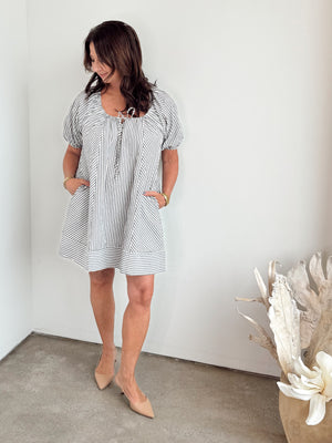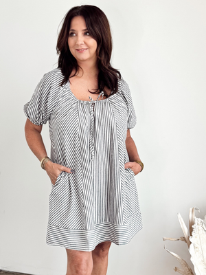 The Julie Striped Puff Sleeve Dress combines timeless striped detailing with statement puff sleeves for an effortlessly chic silhouette. Crafted with premium fabrics, this versatile piece transitions seamlessly from day to evening wear. The structured puff sleeves add dimension and visual interest, while the classic stripe pattern ensures enduring style. Perfect for those seeking elevated everyday elegance with a contemporary edge.