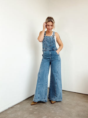 Gabriella Wide Leg Denim Overalls