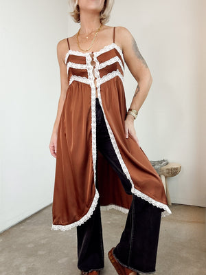 Meet your new go-to layering essential—the Zoey Lace Trim Cami Top. Crafted from silky woven fabric with a subtle sheen, this piece flows beautifully with delicate lace accents framing the neckline, bodice, and hem. The button-front design channels vintage romance, while adjustable straps let you dial in the perfect fit. A high-low hem keeps things interesting, longer in back for that graceful, swishy movement. Throw it over your favorite denim, dress it up for a night out, or wear solo for instant boho-Western charm. Effortless, dreamy, and endlessly versatile.