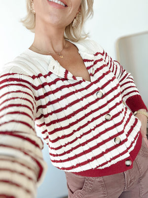 Cozy meets cute in this playful button-up cardigan featuring charming stripes and intricate cable knit details. The Kailey Stripe Cable Cardigan adds a fun twist to your layering game, perfect for chilly days when you want to stay warm without sacrificing style. Easy to button up and soft to the touch, it’s your new go-to for casual comfort with a dash of personality.