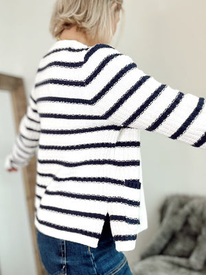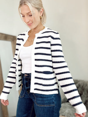 Tara Stripe Open Cardigan Navy