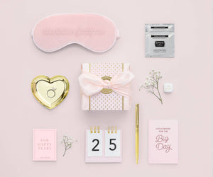 Say yes to no stress! Perfect as a gift to yourself or for the newly engaged, the Wedding Planning Kit by Pinch Provisions will help brides navigate the road to "I Do." Stay calm, cool, and collected with these 8 engagement essentials -- a ring dish, countdown calendar, "decision fatigue" eye mask, ring cleaning towelettes, mini notebook, facial tissues, and decisions dice -- all wrapped in a lovely blush pink bow box.